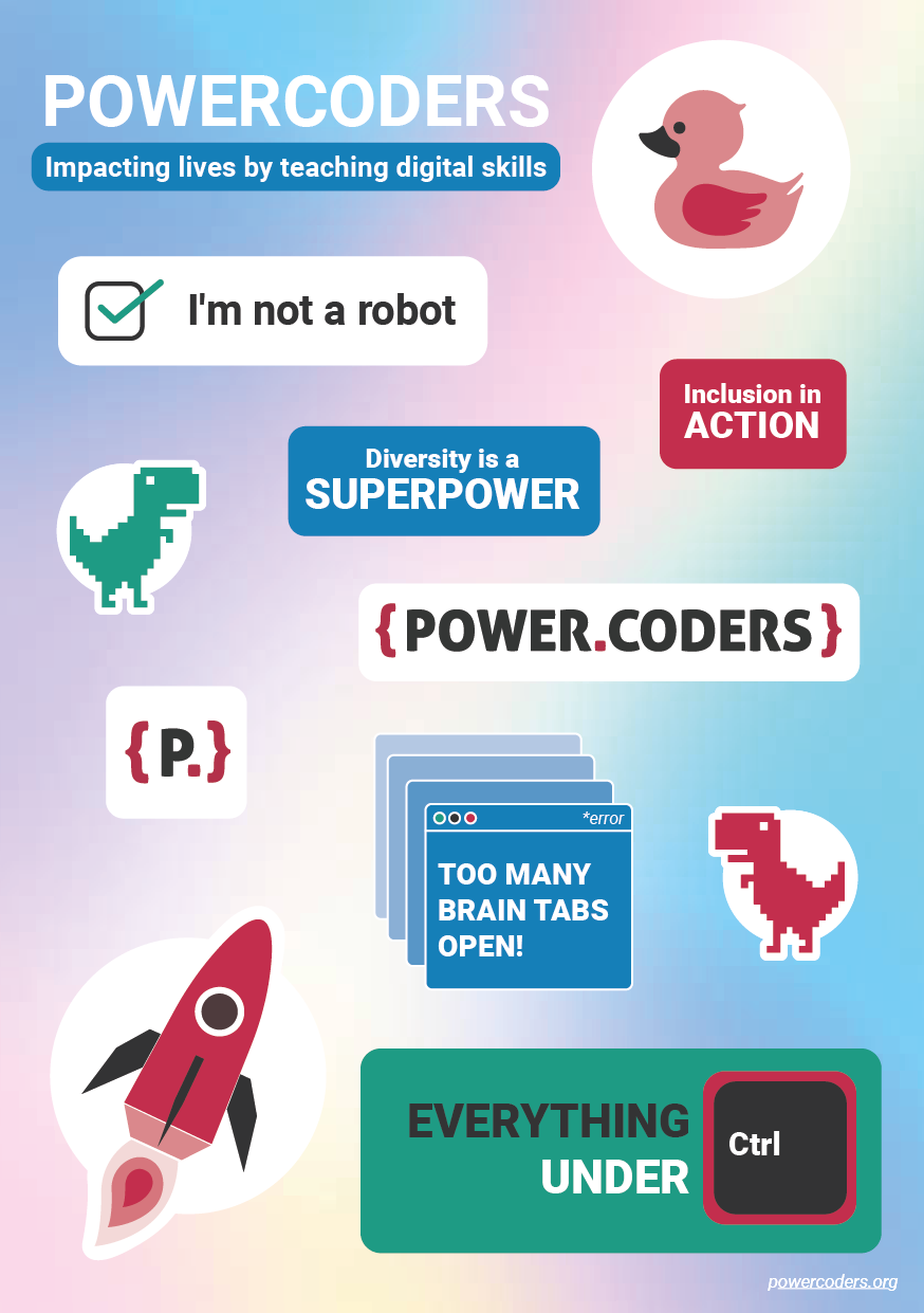 Powercoders beauftragte mich mit der Gestaltung eines Stickersheets. Zu Beginn führte ich ein Kick-off-Meeting durch, um die Vorstellungen, Anforderungen und Einsatzmöglichkeiten genau zu klären. Bei der Gestaltung war es wichtig, das bestehende Corporate Design konsequent zu berücksichtigen. Auf dieser Grundlage entwickelte ich erste Entwürfe der Sticker, die anschliessend ausgearbeitet, visuell aufeinander abgestimmt und druckfertig angeordnet wurden. Die Auftraggeberin wünschte sich einen holografischen Hintergrund, der dem Stickersheet einen auffälligen und hochwertigen Charakter verleiht. Die gesamte Umsetzung erfolgte in Adobe Illustrator.