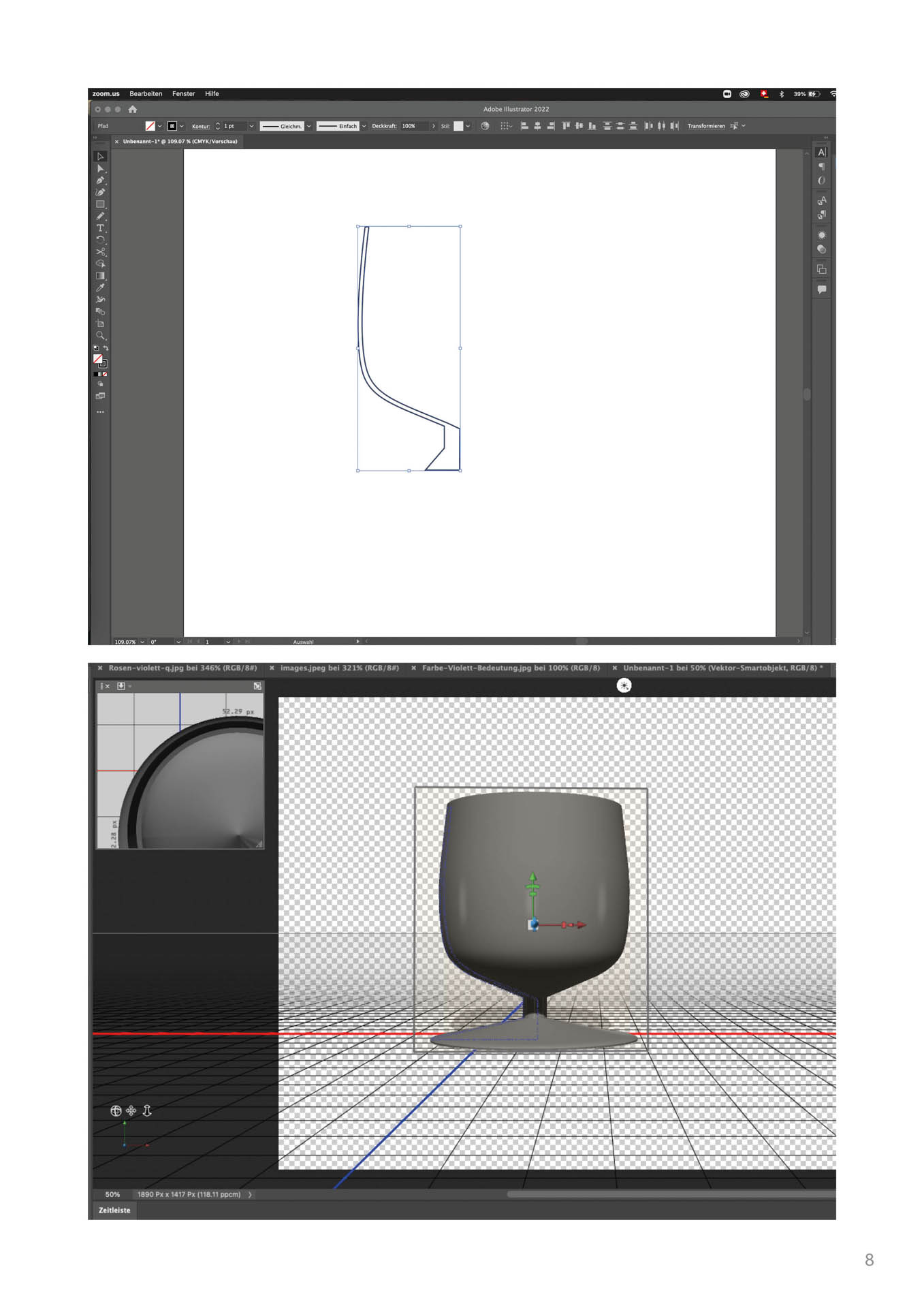 InDesign sowie Adobe Dimension. Letzteres brachte ich mir im Rahmen